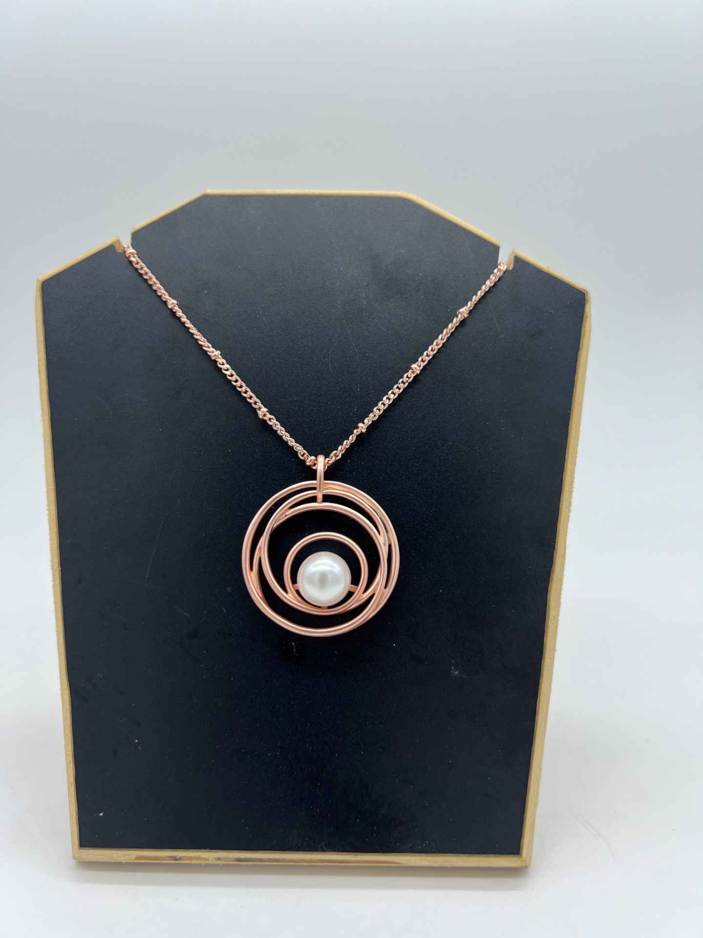 La nostra parure Pearl Oro Rosa , elegante e inestimabile. Composta da: Collana Pearl, Bracciale Pearl, Orecchini Pearl e anello Abstract. Disponibili anche singolarmente. Tutti i nostri gioielli sono in acciaio rodiato e smaltato a mano, inalterabili, anallergici e privi di nichel.
