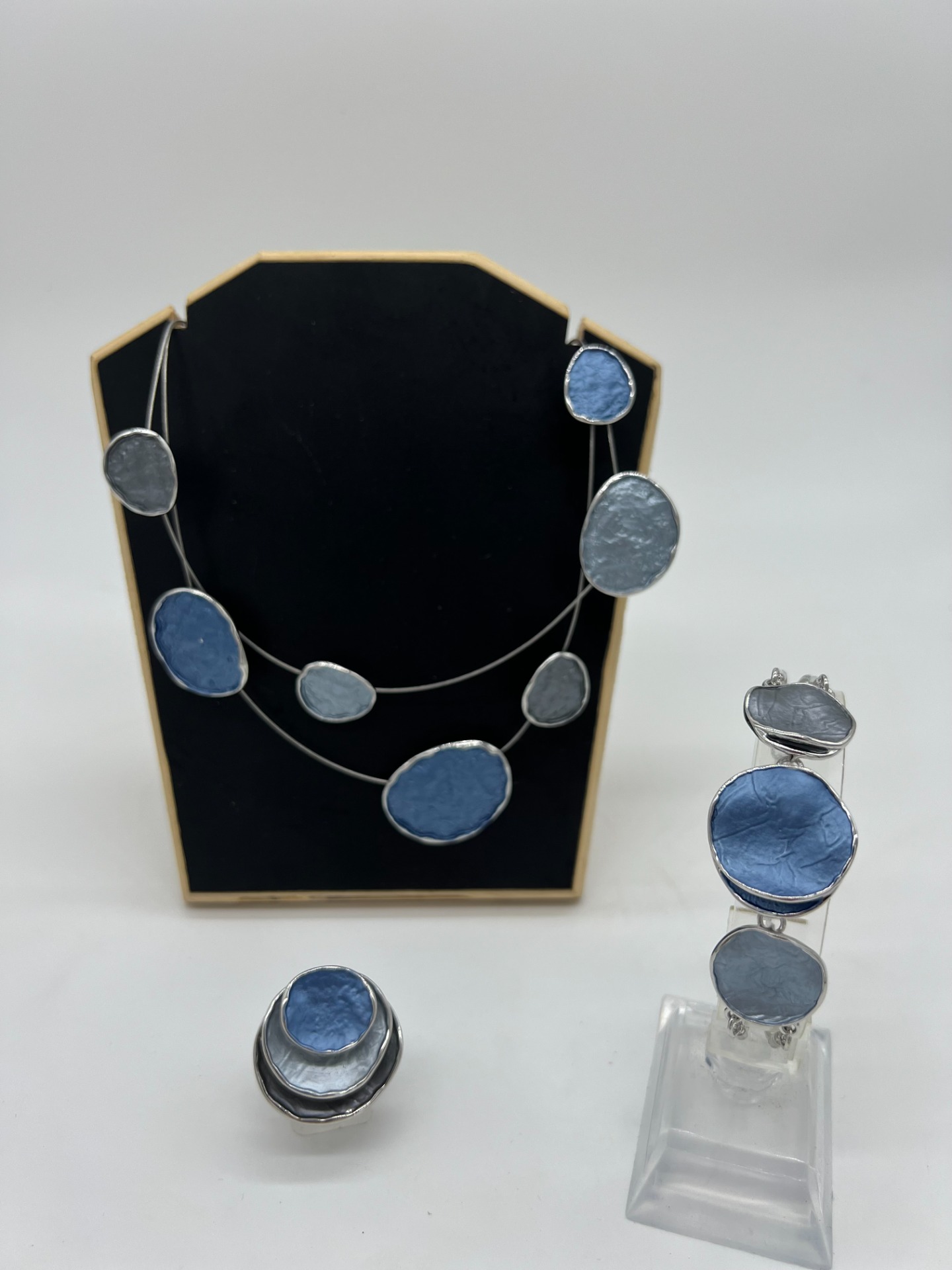La nostra parure Two/Circle Atlantico, nella sua inestimabile bellezza. Composta da: Collana Two, Anello Circle regolabile e Bracciale Circle. Disponibili anche singolarmente.
